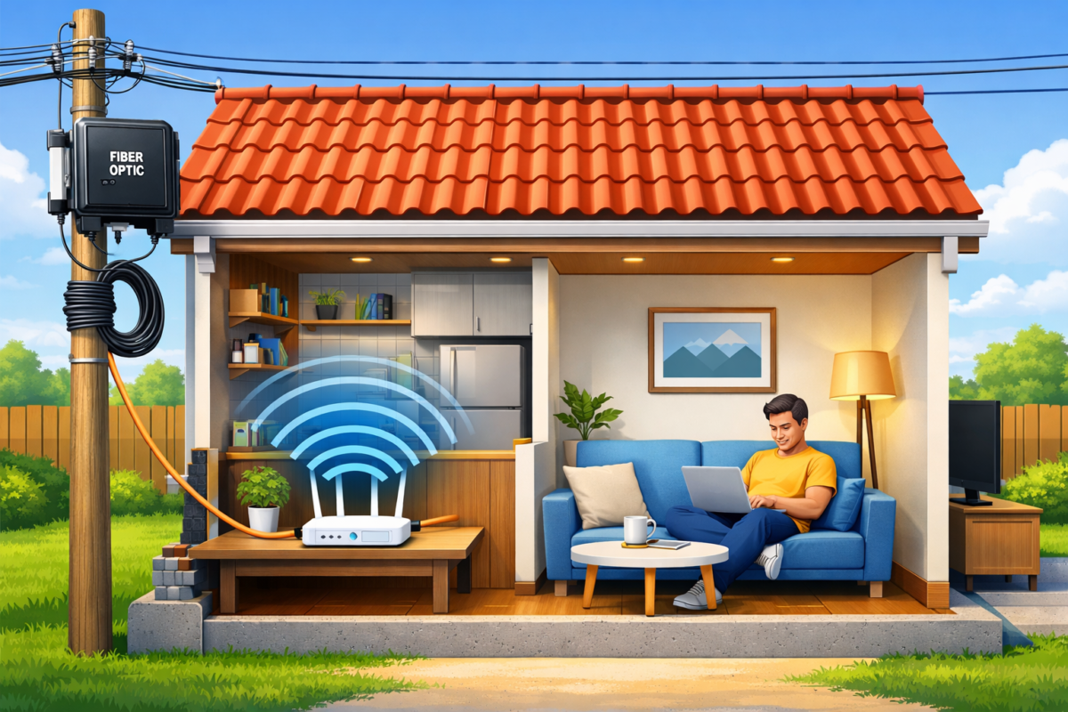 Nhà 1 trệt thường có thiết kế dài ngang hoặc chia nhiều phòng. Nếu đặt modem sai vị trí, sóng wifi dễ bị yếu ở phòng ngủ hoặc phía sau nhà.